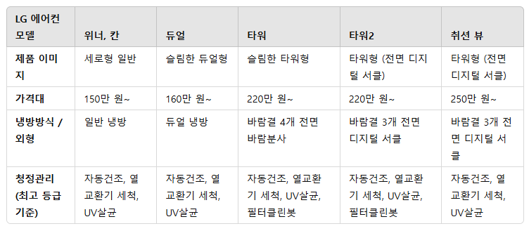 4. LG 에어컨 외형별 특징 및 기능